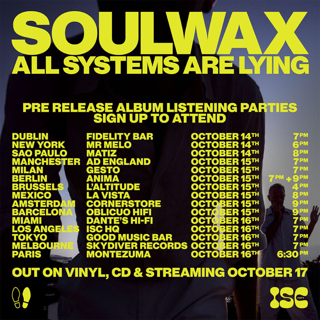 In eleven days, the new Soulwax album ‘All Systems Are Lying‘ is finally out. If you want to hear the album in full a few days before the 17th of October, you can go to one of fourteen listening parties all over the world. From Dublin to Tokyo!