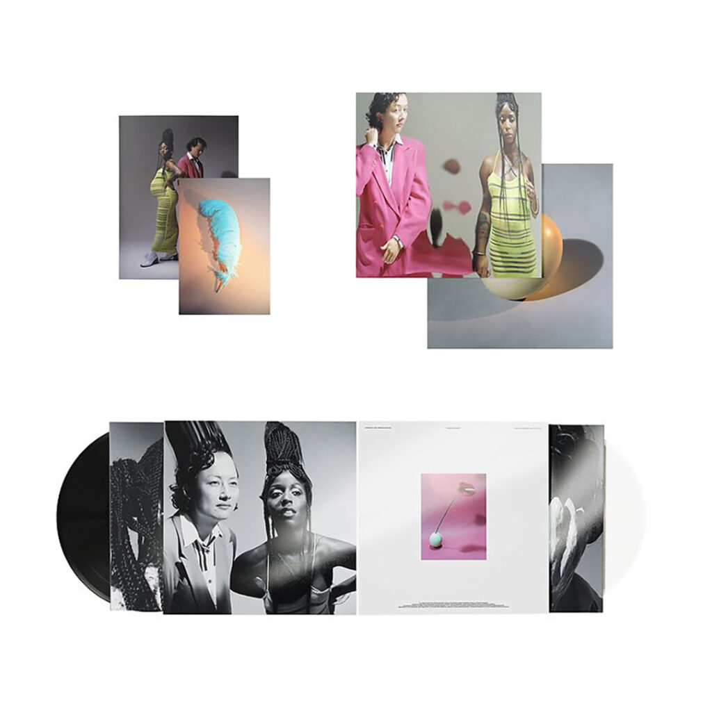 This includes a 2LxP in a UV gloss gatefold sleeve with printed inners and a download card, 32-page photo zine collecting images from the Charlotte & Boris album collaboration with Camille Vivier, plus outtakes and behind-the-scenes images. Two 31×31 art prints and a numbered book plate signed by Charlotte & Bolis, all housed in a clear PVC bag.