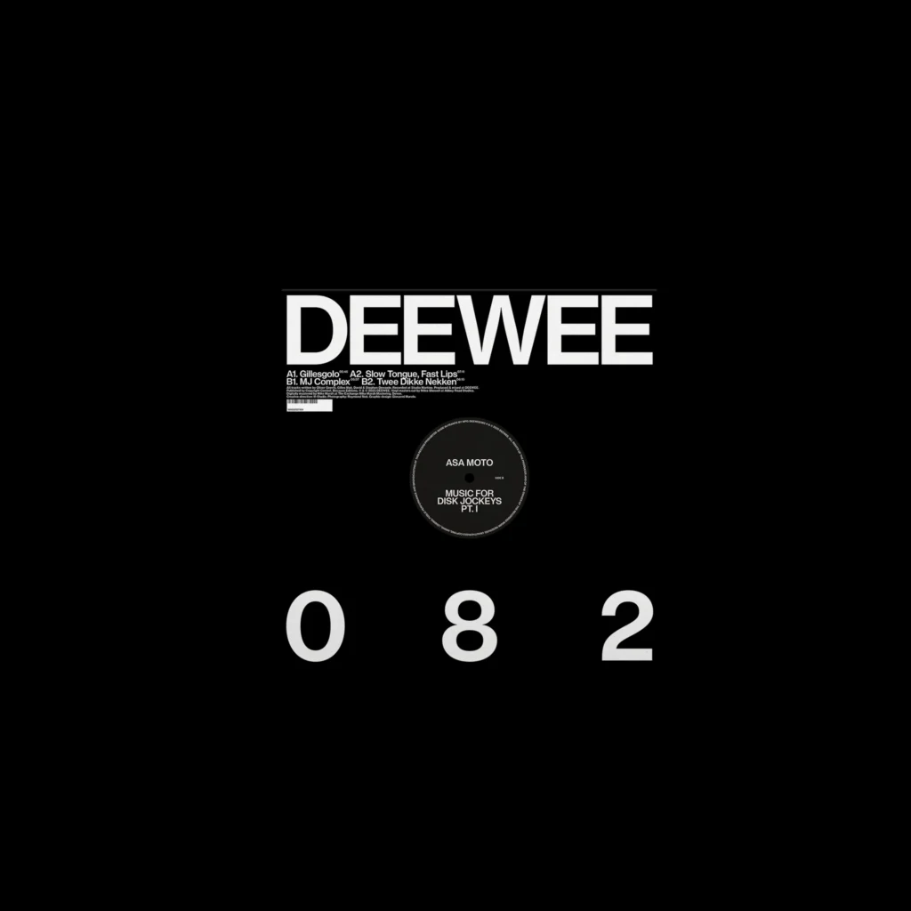 All signals run through Studio Martino in Ghent — their own control room for recordings, remixes, transmissions. The records surface on DEEWEE, the label founded by Stephen and David Dewaele of Soulwax/2manydjs — the only one reckless enough to carry them. The next, DEEWEE082 — Music For Disk Jockeys Pt. 1, continues the line — four tracks as proof that Asa Moto refuse limits, because the world refused them first.