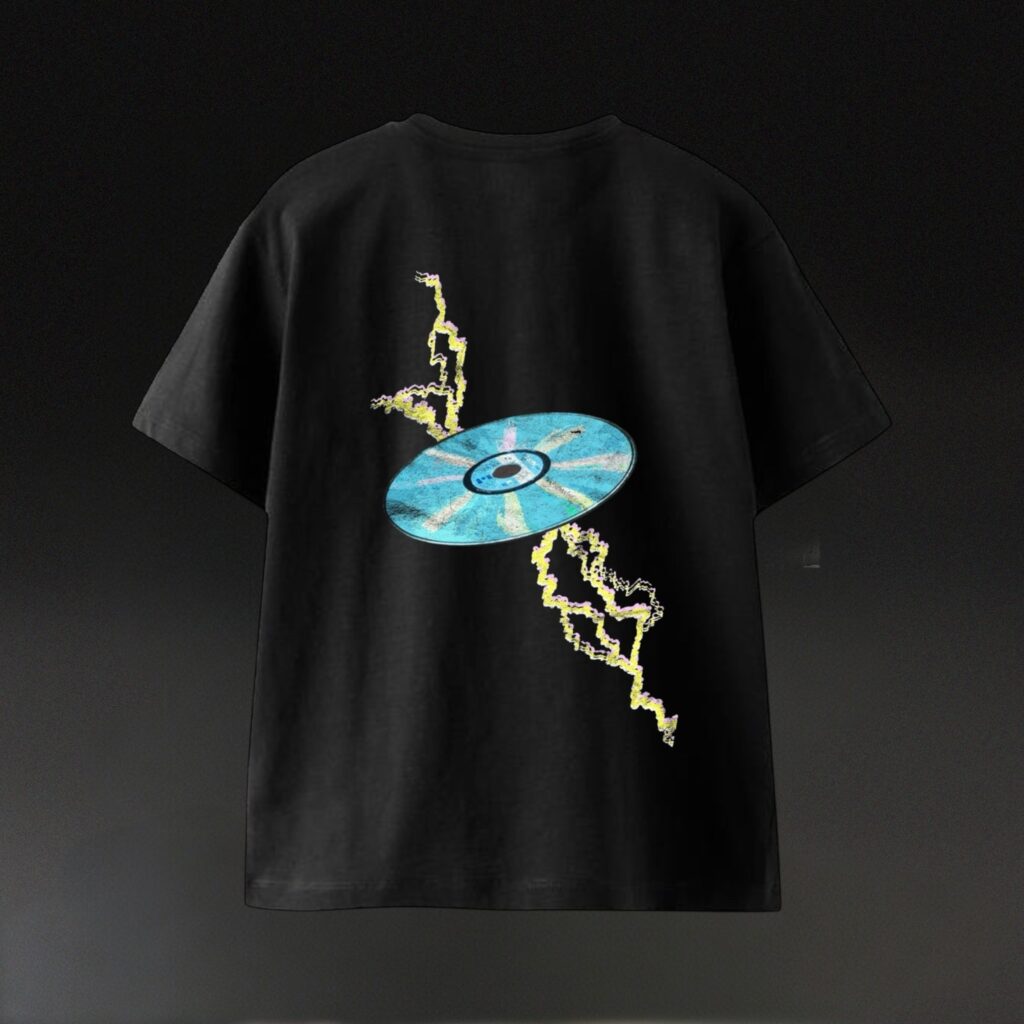 – Vintage wash T-Shirt in Black with 5 colour screen print